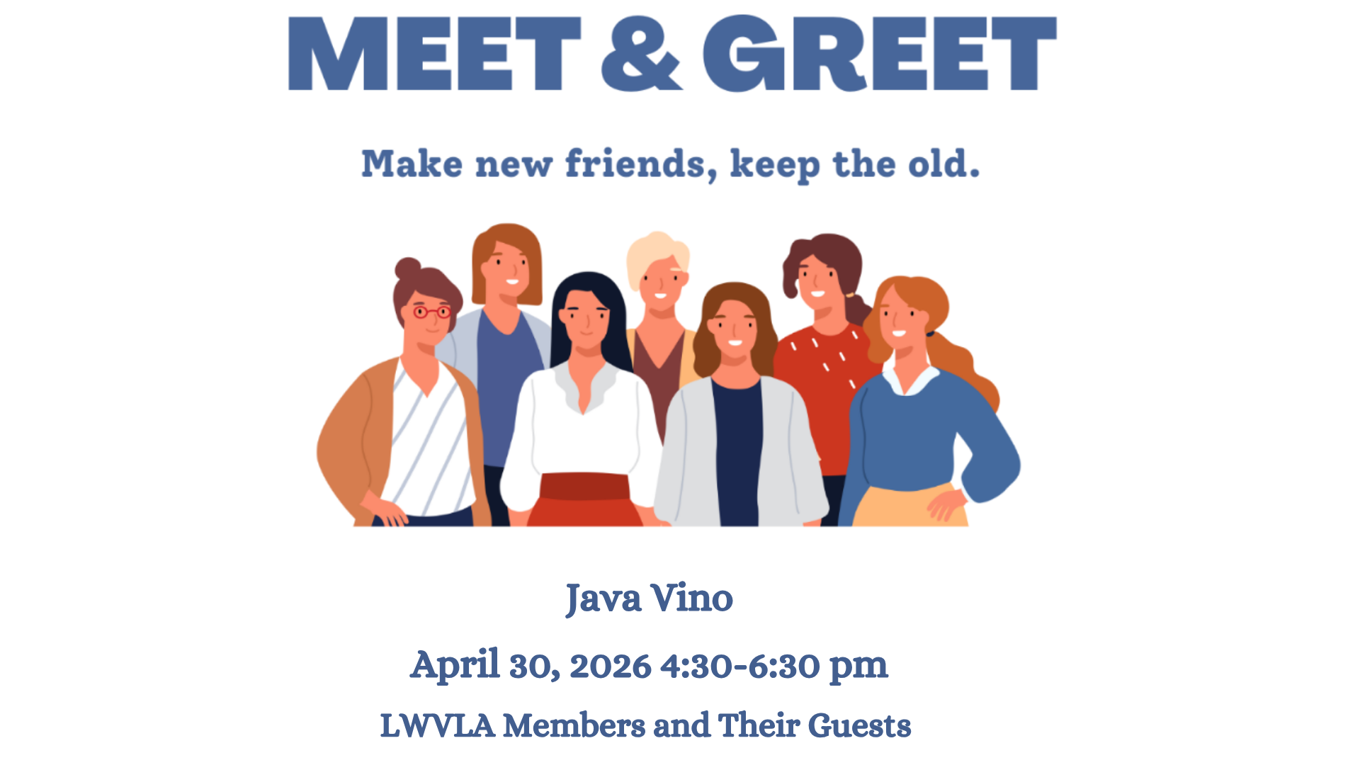 League members—new and old—please join us for a Meet and Greet social gathering at Java Vino on Thursday, April 30!